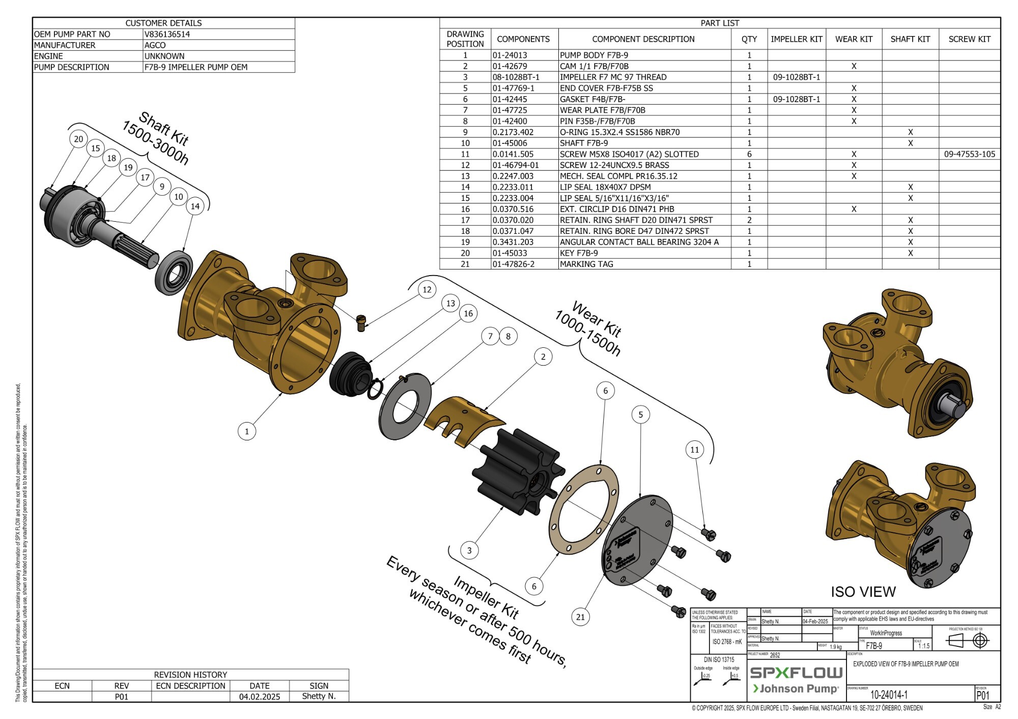 Maintain your Johnson 10-24014-1 bronze pump with SPX Flow OEM replacement parts. Impellers, cams, end covers, wear plates, mechanical seals, O-rings, and gaskets are all included for complete raw water pump rebuilds.