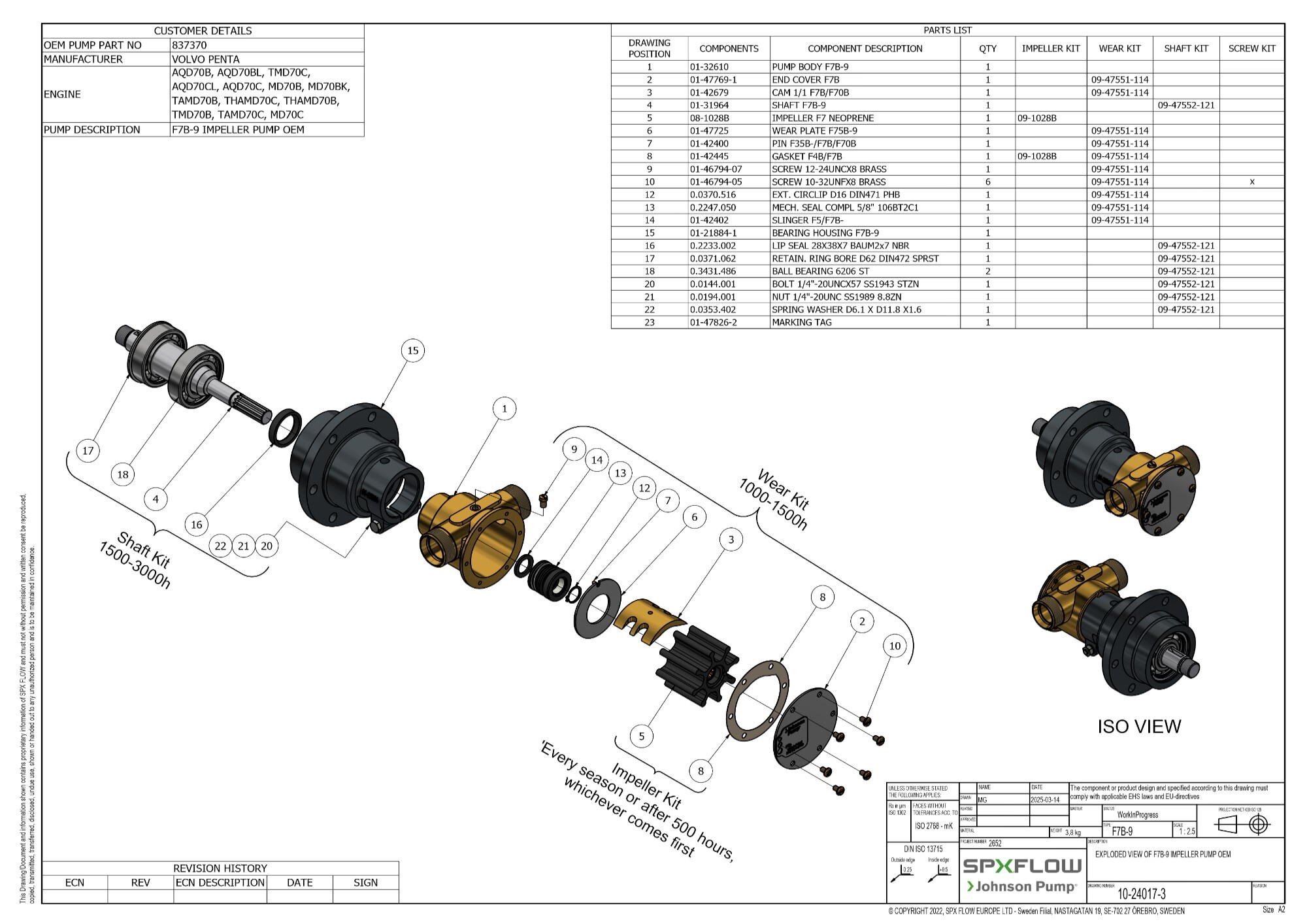 Restore your Johnson 10-24017-3 bronze pump with SPX Flow OEM replacement parts. Impellers, cams, end covers, wear plates, mechanical seals, O-rings, and gaskets are all supplied for a complete raw water pump rebuild.