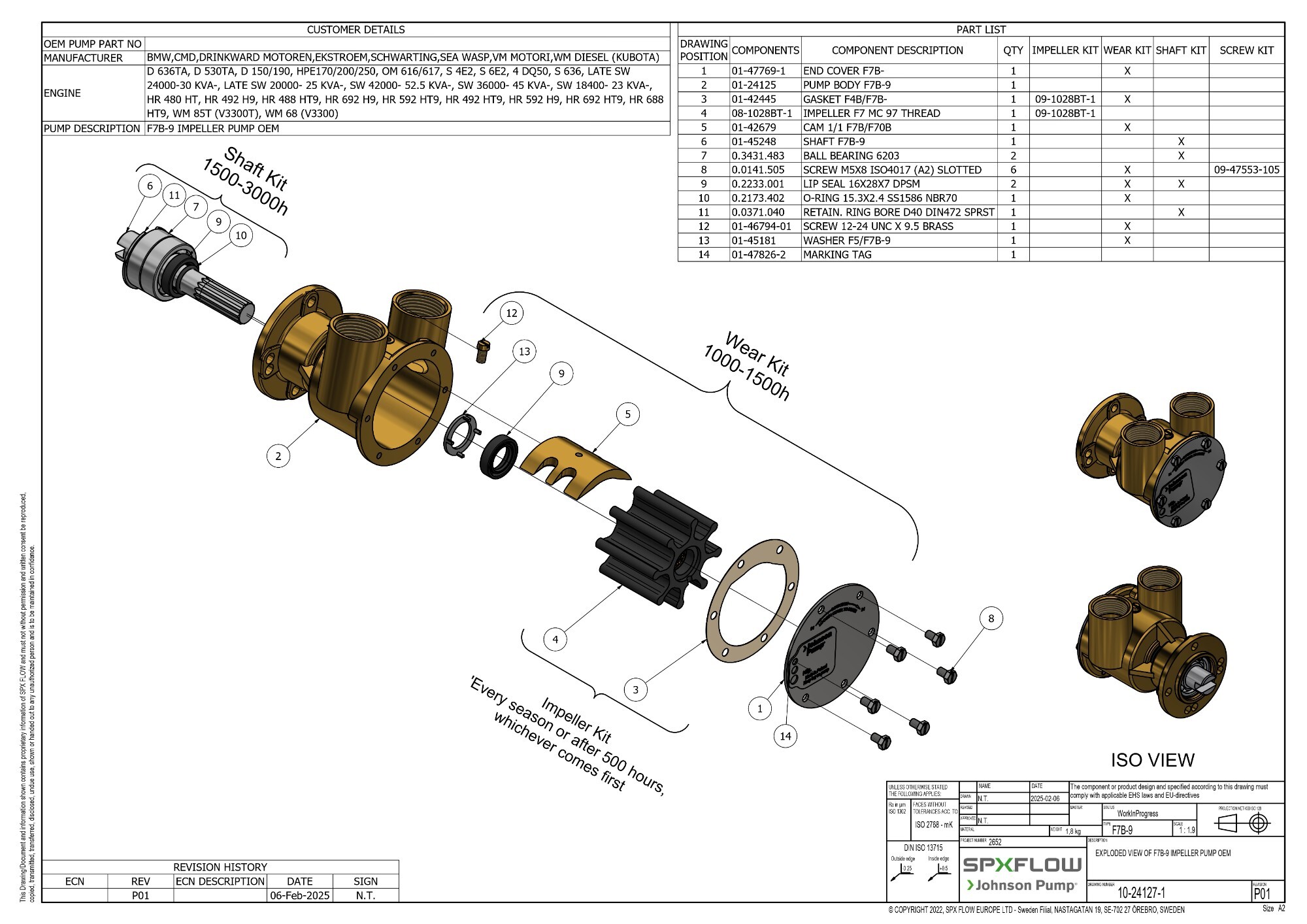 Maintain your Johnson 10-24127-1 bronze pump with SPX Flow OEM replacement parts. Impellers, cams, end covers, wear plates, mechanical seals, O-rings, and gaskets are all supplied for reliable raw water pump performance.