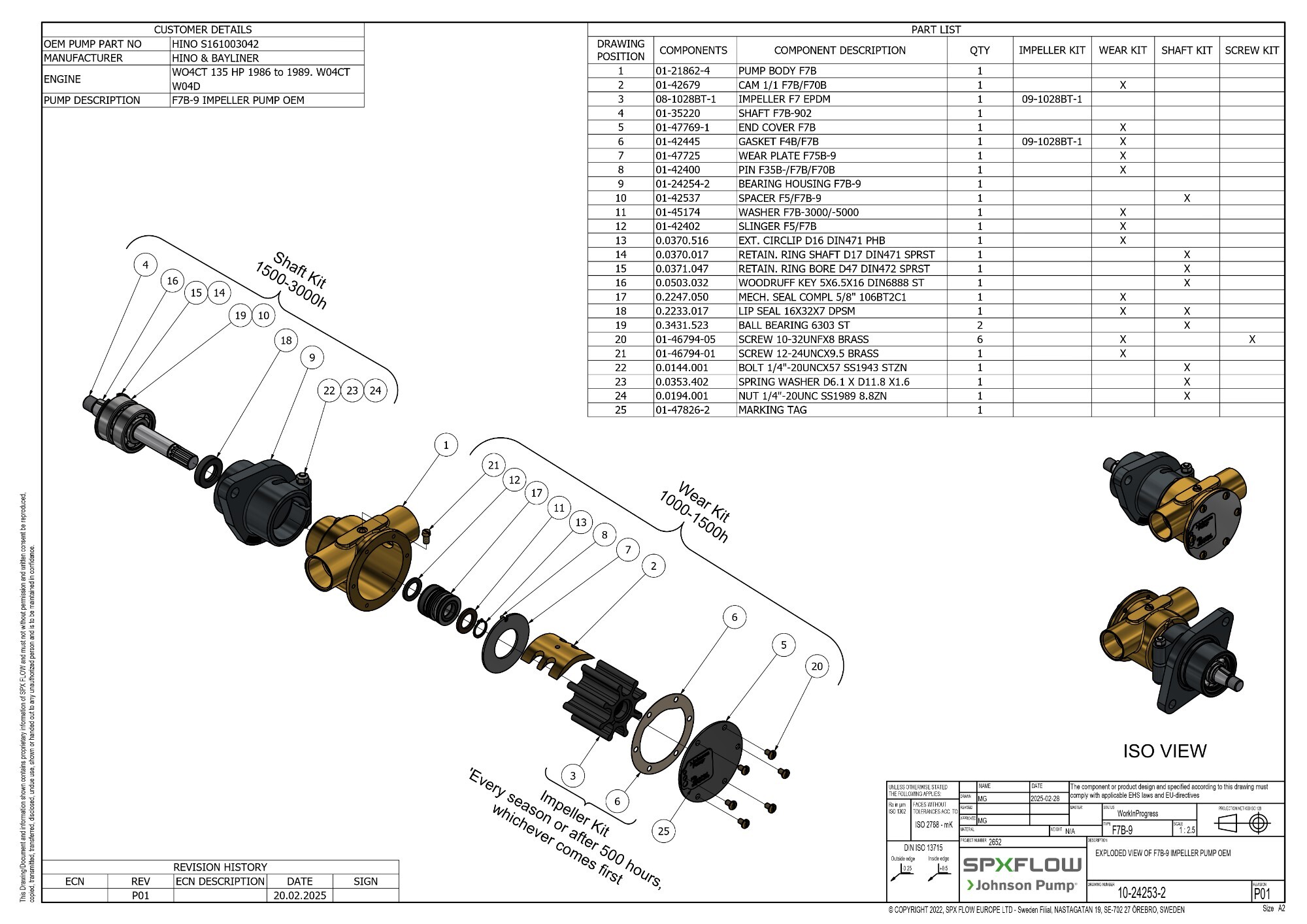 Refurbish your Johnson 10-24253-2 bronze pump using SPX Flow OEM replacement parts. This complete raw water pump rebuild kit includes impellers, cams, end covers, wear plates, mechanical seals, O-rings, gaskets, bolts, nuts, and all essential components for dependable marine performance.