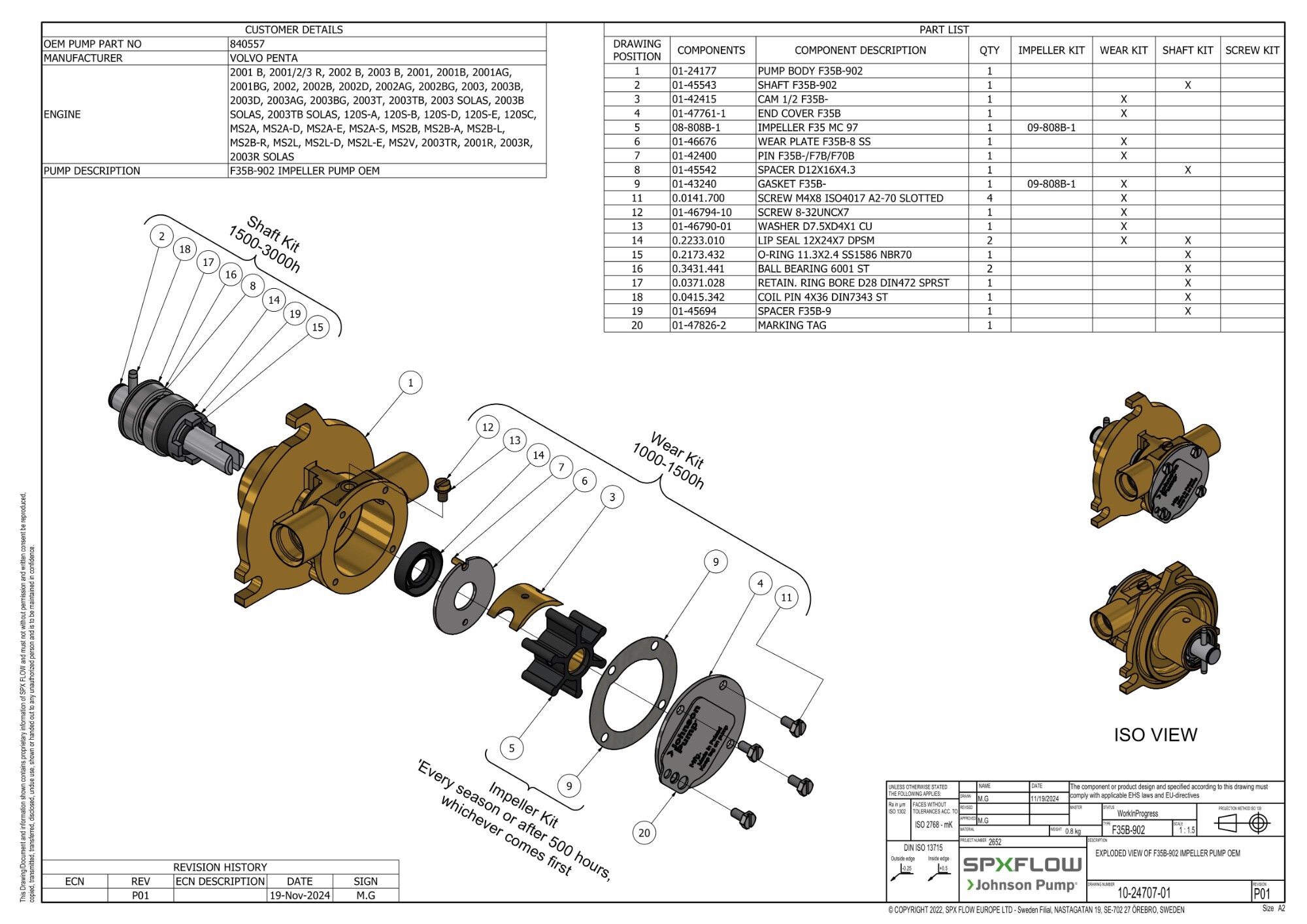 Keep your Johnson 10-24707-01 raw water pump performing reliably with SPX Flow OEM parts. Choose individual components such as impellers, seals, O-rings, cams, gaskets, and wear plates to maintain optimal pump operation.