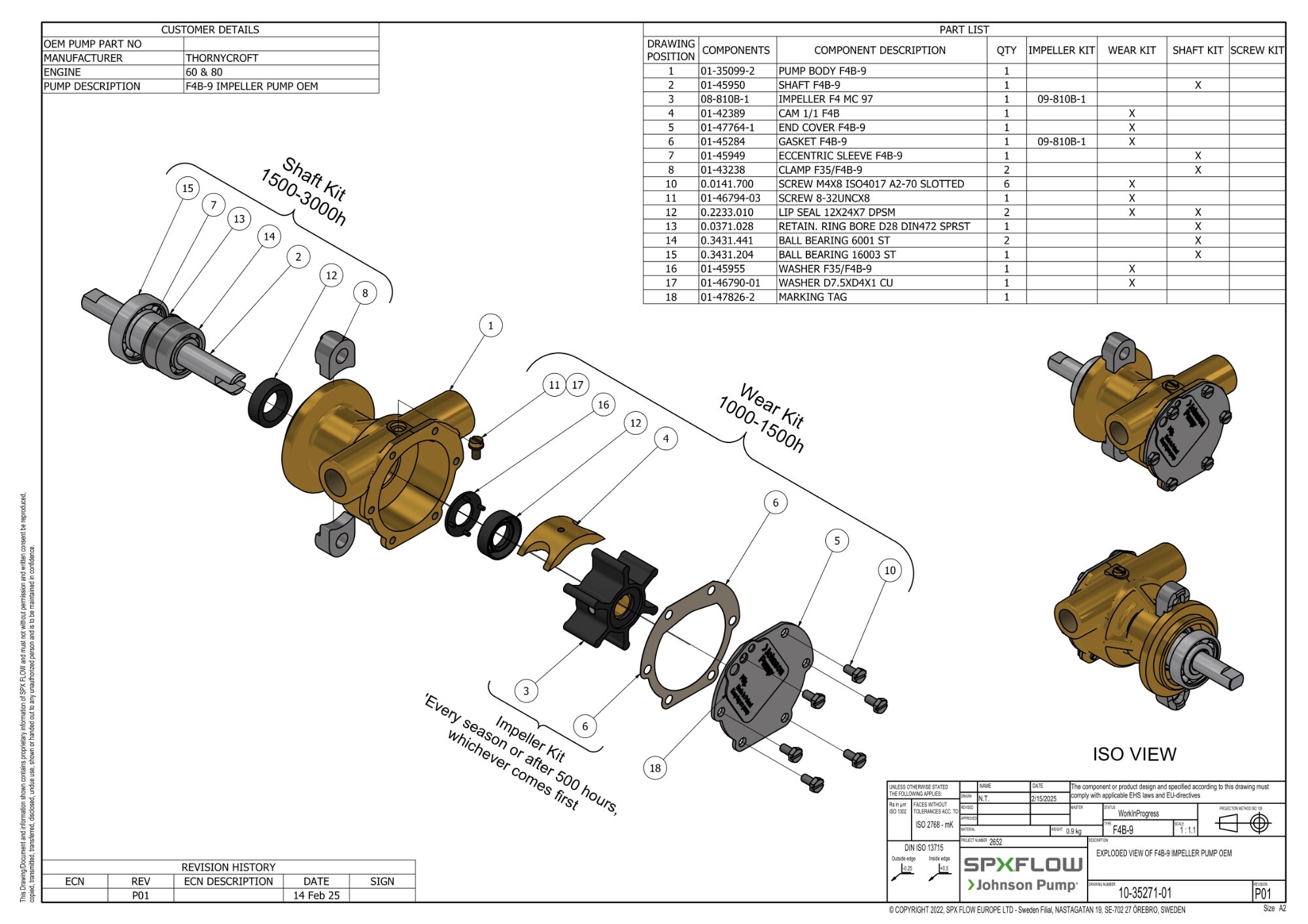 Keep your Johnson 10-35271-01 raw water pump performing reliably with SPX Flow OEM parts. Choose individual components such as impellers, seals, O-rings, cams, gaskets, and wear plates to maintain optimal pump operation.