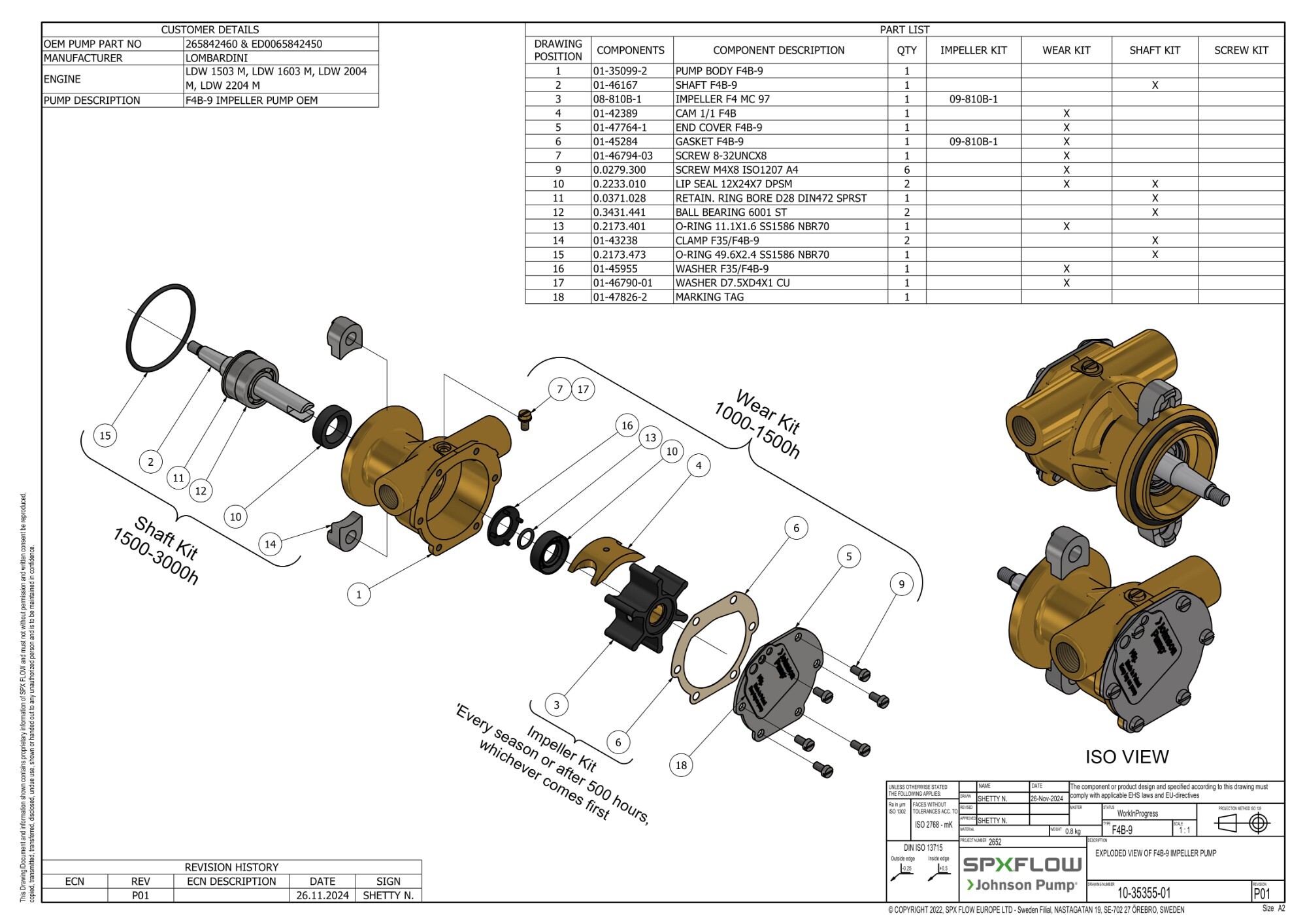 Keep your Johnson 10-35355-01 raw water pump performing reliably with SPX Flow OEM parts. Choose individual components such as impellers, seals, O-rings, cams, gaskets, and wear plates to maintain optimal pump operation.