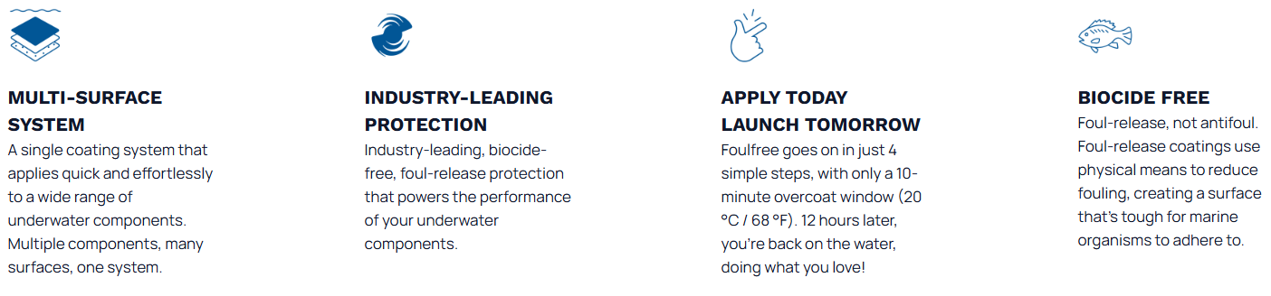 The Foulfree Multi-Surface System prevents marine growth from taking hold, delivering invisible, non-invasive, biocide-free protection that blends seamlessly with your boat’s aesthetics. It’s easy to apply and engineered to deliver performance throughout the entire boating season.
